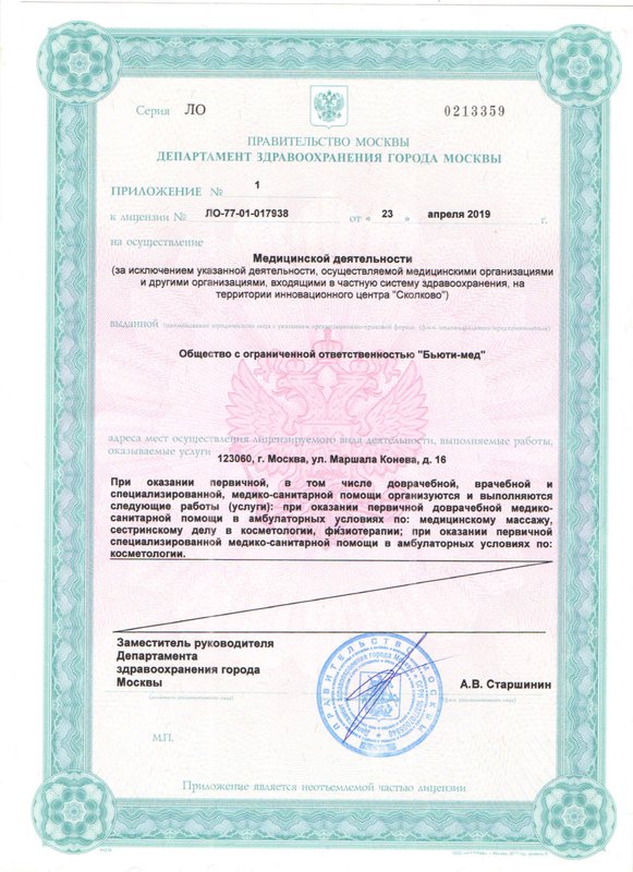 Профессиональная переподготовка: ГУ ВПО Московская медицинская академия им. Сеченова , диплом 167890 по специальности «Дерматовенерология» от 16.05.2004 . ГБУЗ МО МОНИКИ , диплом 010499 от 07.06.213 по специальности «Косметология». РУДН, диплом 17015767 от 25.12.2018 по специальности «Основы здравоохранения и общественное здоровье»