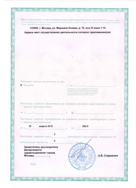 Диплом : Первый Медицинский институт имени Сеченова Диплом 011227 от 23.06.1990 г. по специальности «Санитария, гигиена и эпидемиология»